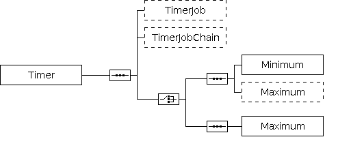 A timer implements a performance check that validates if the execution of a job chain took longer or shorter than expected. Each timer is assigned a unique identification with its name attribute. The timer contains <Minimum> and <Maximum> child elements that implement scripts to return the required and allowed value. Specifies the jobs for which notifications are being sent to a system monitor. Specifies the job chains for which notifications are being sent to a system monitor.