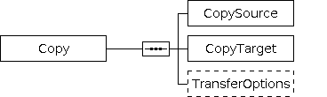 A Copy operation performs the transfer of files between a source and a target host. Two settings groups are available to specify a Copy operation: This parameter specifies the source of a Copy operation. The following frequently used settings groups are available: This parameter specifies the target of a Copy operation. The following frequently used settings groups are available: Transfer options specify the optional behavior of file transfer, e.g. the transactional behavior.