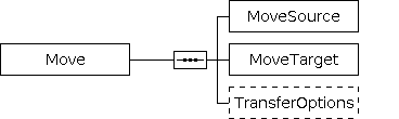 The Move operation is similar to the Copy operation except that the source files will be removed after successful transfer. Two settings groups are available to specify a Move operation: This parameter specifies the source of a Move operation. The following frequently used settings groups are available: This parameter specifies the target of a Move operation. The following frequently used settings groups are available: Transfer options specify the optional behavior of file transfer, e.g. the transactional behavior.